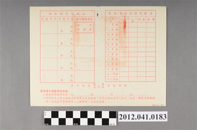 民國70年代退伍軍人眷屬實物補給登記卡片