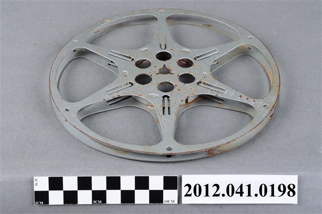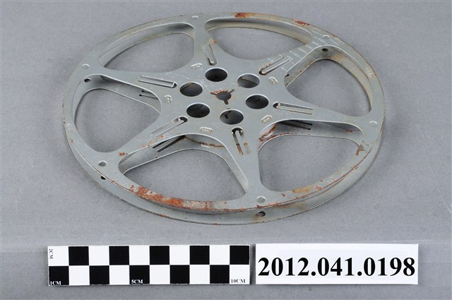 本物件為膠捲框,鐵製。該物件整體外觀為圓形框,整體外觀有鏽蝕痕跡。其內部設置等分六角的支架,中間挖空6個圓孔、6個U字型。該物件有「50」、「100」、「150」、「200」、「250」、「300」、「350」、「400」、「FEET」的刻痕。