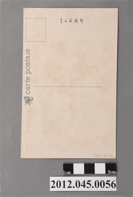 1. 本物件為以臺灣婦人其二為主題之明信片,正面為1名女性半身黑白照片,影像中為婦人頭上戴有頭飾,兩耳掛有耳墜,並穿著中國傳統服飾,領襟、袖口處可觀察有淺色花紋的緄邊,領口及胸前為深色,並有3個中國結圖樣,影像下方標有「臺灣漢人其二」、「MAIVNERS OF NATIVE FORMOSA」、「(澎湖坂井商店發行)」。背面為空白明信片直式書寫面,以黑色單色印刷,左上角方框為郵票黏貼處,上側註有「郵便はがき」,左方有一飛馬圖樣,並以英文標有「carte postale」,中間有一分隔線。2.臺灣漢人傳統服飾源於中國原鄉,精於細部裝飾,其上衣統稱為衫,成套衫裙多於重大場合才穿,而連身裙裝因側邊有開岔,需多穿長褲。