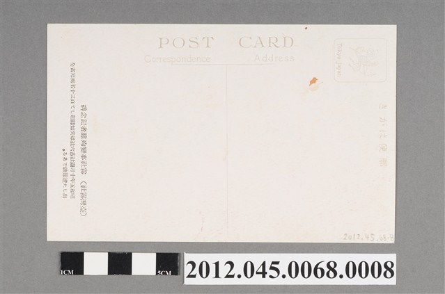 1. 本物件為以臺灣霧社霧社事變殉難者紀念碑為主題之明信片,正面為霧社事變殉難者紀念碑彩色照片,影像中央為1座石碑,上方以圓球為頂,並為圓柱形,正面題字為「霧社事件殉職殉難者之墓」,碑柱下方中央位置有1座香爐,兩側各插有1株粉紅色花朵的植物,可能為櫻花。背面為空白明信片直式書寫面,以褐色單色印刷,右上角方框中印有一隻飛馬圖樣,及「Tokyo Japan」,上方有「郵便はがき」,下方有「(臺灣霧社)霧社事變殉難者記念碑」、「昭和五年十月霧社蕃六社は突如蜂起して百三十名殉死者を出した遭難碑である。」(大意為:昭和五年(西元1930年)十月霧社六社原住民突然起義造成一百三十名殉難者的遭難紀念碑。),左方為「POST CARD」,其右方兩側下為「Correspondence」,上為「Address」,中間有1道分隔線。2.埔里盆地自日治初期因位於南北蕃交會點,被認為是理蕃事業適合位置,該地人口組成主要為賽德克族,霧社又為當地一大原住民社。而霧社事件發生於西元1930年,屬原住民武裝抗日事件。霧社事件長達兩個月,發生當日更從臺北州調度應援巡查隊、宜蘭郡與羅東的警部人力,可見規模龐大。霧社神社設立於1932年,名為「霧岡社」,總督府於此神社設立「殉難殉職者紀念碑」,以紀念因霧社事件殉難、殉職的民眾。