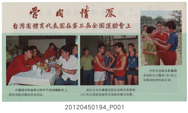 「骨肉情深--台灣省體育代表團在第三屆全國運動會上」中國共產黨對臺灣政治宣傳單