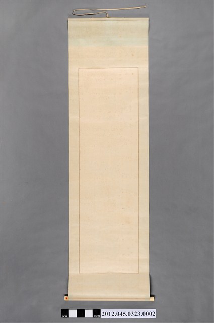 此為一書法卷軸,內容「無為欺世之豪傑」出自明朝陸紹衍編輯的〈醉古堂劍掃〉格言「寧為隨世之庸愚,無為欺世之豪傑。」墨寶註記「癸未之夏」(1883年),蓋有「二品親王」、「能久」兩落款。 此物件的作者北白川宮能久親王(以下稱北白川宮),為日本天皇的皇族成員之一,北白川宮於明治維新之時,受到最後的幕府將軍德川慶喜的委託,前往與以薩長兩藩為首的倒幕勢力議和,但是倒幕派拒絕,於是北白川宮被江戶幕府、奧羽越列藩推舉為「東武天皇」與擁戴明治天皇的倒幕派敵對,最終兵敗遭到軟禁,且被要求出家,後獲赦免還俗。於日本在甲午戰爭後,北白川宮被命令自遼東半島率軍前往臺灣協助鎮壓臺灣的反抗勢力,但在臺灣逝世。北白川宮死後被日本官方神格化,作為治臺象徵「臺灣神社」的主祭神,並在日本治臺的50年間不斷傳頌北白川宮的征台事蹟。(吳佩珍,2014:136-140。)