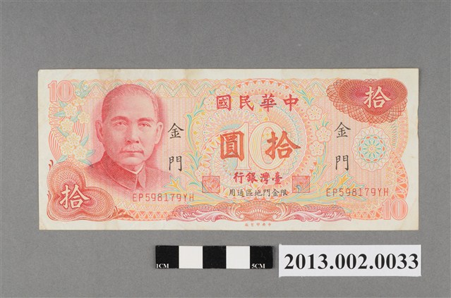 2013.002.0033 新臺幣-拾圓紙鈔(限金門地區通用)