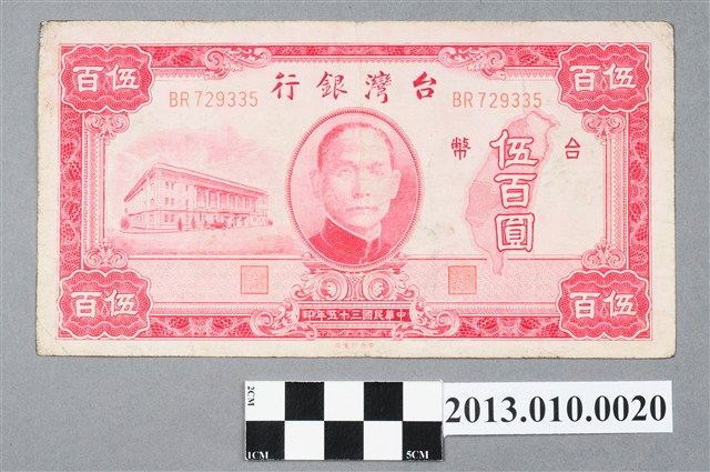 2013.010.0020 中央印製廠伍百圓臺灣銀行臺幣