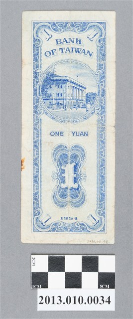 2013.010.0034 臺灣銀行印刷所壹圓臺灣銀行新臺幣