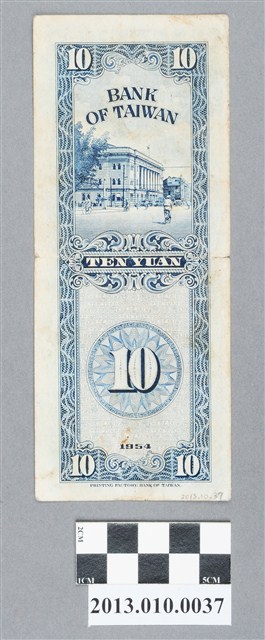 2013.010.0037 臺灣銀行印刷所拾圓臺灣銀行新臺幣