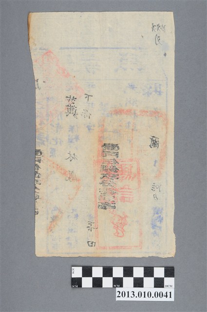 為臺灣府彰化縣正堂朱公純(依據模糊字樣似是朱推斷)發給藍興堡糧戶林鳳完稅的執照(照明)