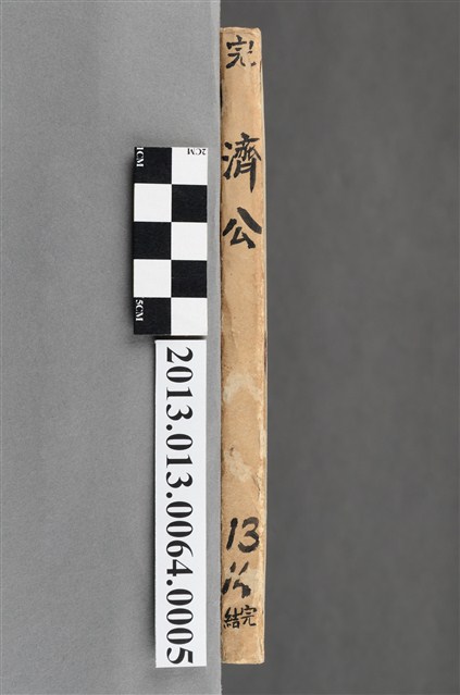《濟公》系列漫畫叢刊共分五冊,每冊三集。內容以漢式人物繪漫畫方式描述濟公活佛的傳奇事蹟與冒險故事。由黃國樑主編,台北南華出版社發行,民國五十年七月出版。本件為第五冊〈大破慈雲觀〉,附書套,封面及內頁印有藏書章。