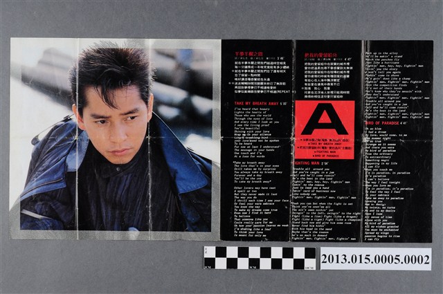 飛利浦唱片公司(寶麗金唱片集團)發行編號「SF 1032」譚詠麟華語及英語歌曲專輯《半夢半醒之間》歌詞單