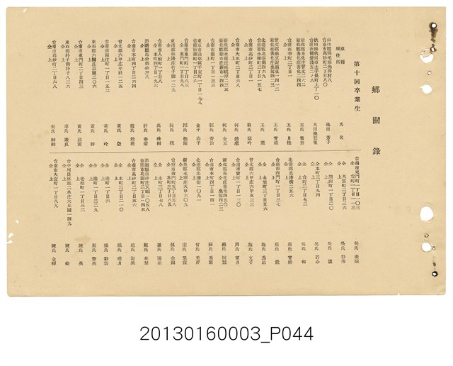 2013.016.0003 《臺南第二高等女學校第10屆畢業紀念冊》