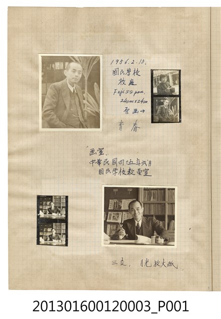 民國45年2月12日陳崧波於善化國校教職員室窗邊獨照4張