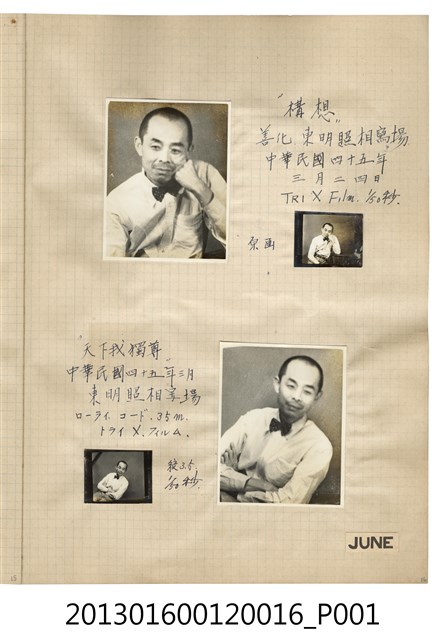 民國45年7月9日劉公子獨照與陳崧波獨照與女子獨照6張