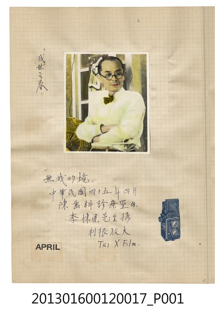 民國45年7月11日陳崧波於臺南海利亞照相材料行獨照與風景照5張