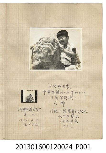 民國45年4月1日陳義鴻騎石獅獨照2張