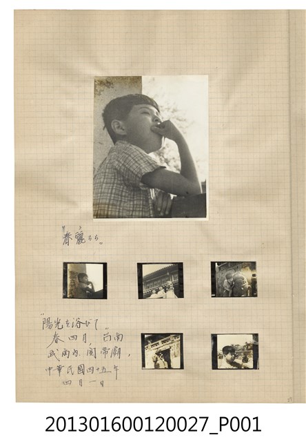 民國45年7月11日陳崧波於臺南海利亞照相材料行獨照與風景照5張