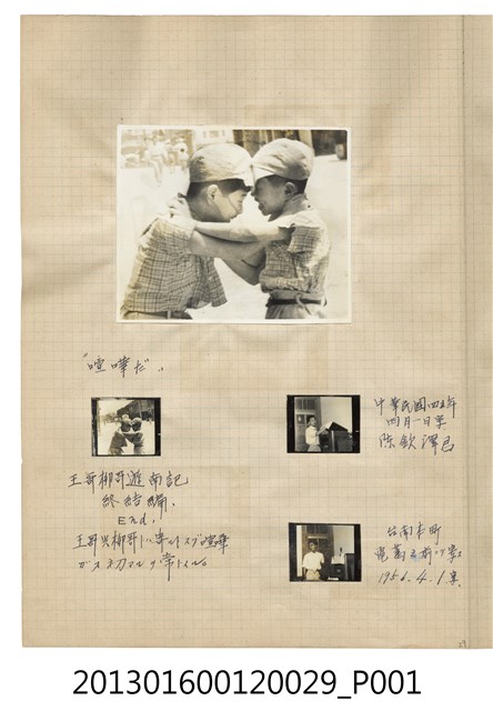 民國45年4月1日陳新平、陳義鴻兄弟臺南遊記合照與陳欽澤獨照4張