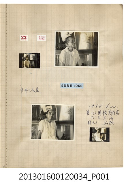 1956年4月22日陳崧波於國民學校美術室內獨照4張