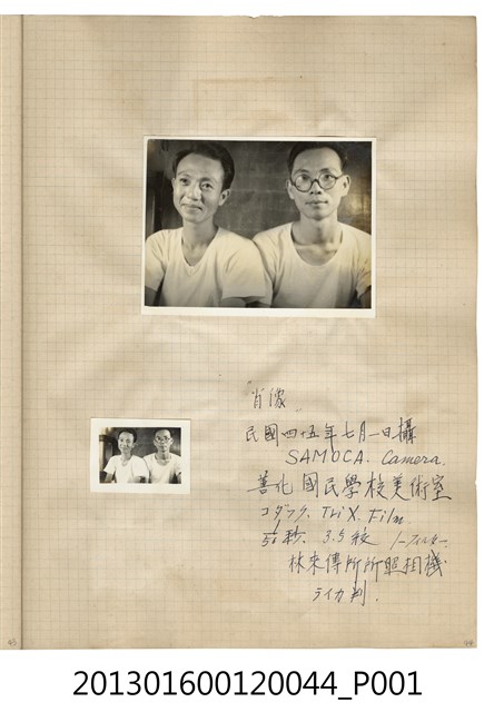 民國45年7月陳崧波於善化國民學校美術室獨照2張