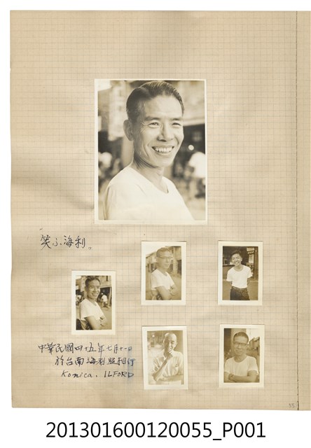 民國45年7月11日陳崧波於臺南海利亞照相材料行獨照與風景照5張