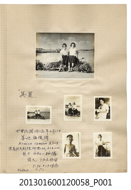 民國45年7月13日陳美惠與同學照以及陳崧波家人獨照6張