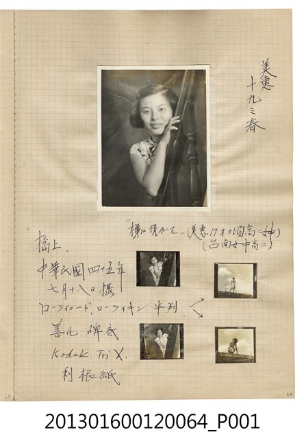 民國45年7月13日陳美惠與同學照以及陳崧波家人獨照6張