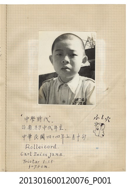 民國45年2月1日陳美悧於善化國民學校獨照2張