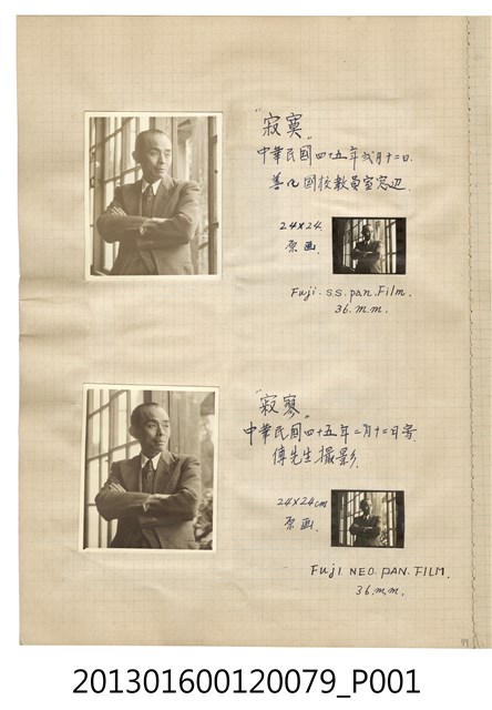 民國45年7月11日陳崧波於臺南海利亞照相材料行獨照與風景照5張