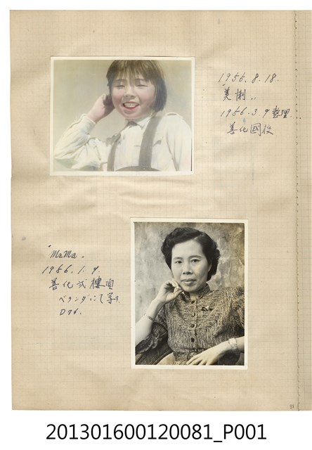 民國45年2月1日陳美悧於善化國民學校獨照2張