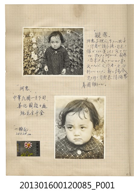 民國45年1月施先生千金—阿惠幼兒獨照與風景照2張