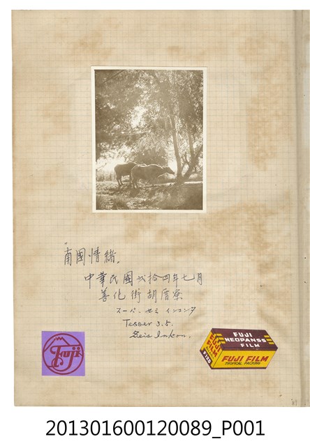 民國45年7月11日陳崧波於臺南海利亞照相材料行獨照與風景照5張