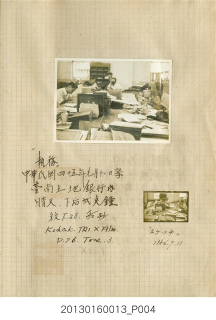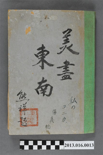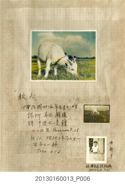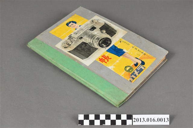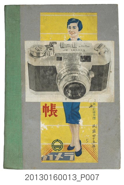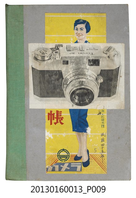陳崧波文物之藍色書皮剪貼簿,封面有「高級洋裁帳」字樣,為大同出品的帳本。這本剪貼簿原本為收支記帳簿,陳崧波將記帳簿之作為報章照片、生活照剪貼與整理之用。內頁註明使用於1956年7月至9月間,內容即這段期間陳崧波的個人攝影作品,每張照片並以日文手寫附寄攝影資料。
