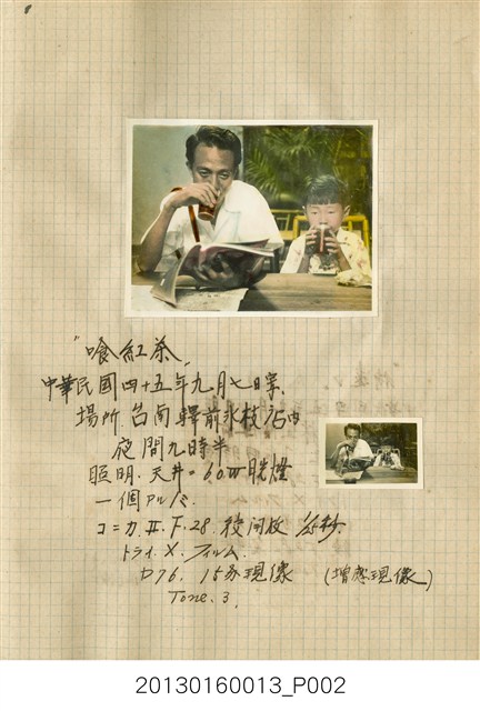 這本剪貼簿中的作品較為生活化,如吃鱔魚意麵、臺南銀座夜景、小吃店、喝紅茶等照片,還有以「王哥柳哥」為主題、記錄陳義鴻、陳新平兩兄弟在赤崁樓等名勝遊玩的照片,其中有幾張特別上色沖洗,展現當時陳家人的生活與娛樂樣態。