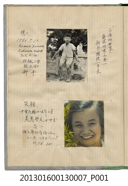 民國45年9月9日陳美惠與陳新平於善化國民學校前合照以及風景照共3張