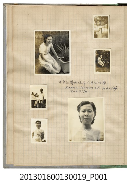民國45年8月7日陳崧波妻子與陳美悧獨照6張
