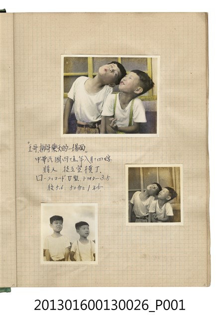 民國45年8月29日陳義鴻與陳新平兄弟於善化國民學校操場合照2張