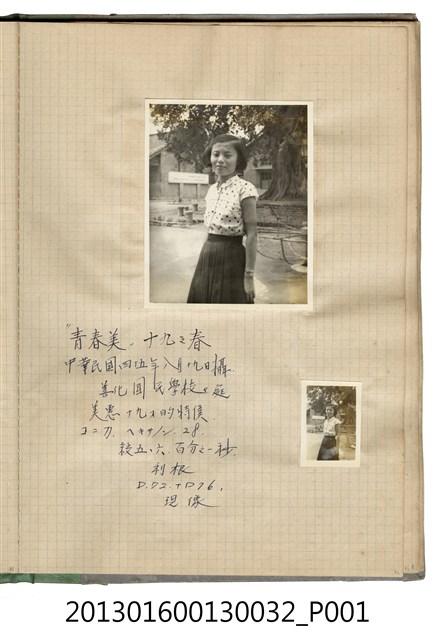 民國45年8月19日陳美惠於善化國民學校獨照2張