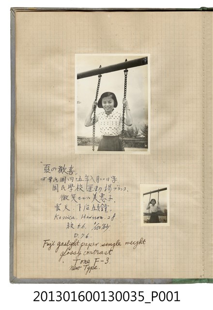 民國45年8月19日陳美惠於善化國民學校運動場獨照2張