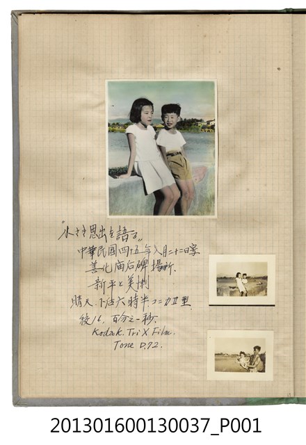 民國45年9月9日陳崧波與陳新平於善化廟後埤岸合照以及陳美惠獨照共3張