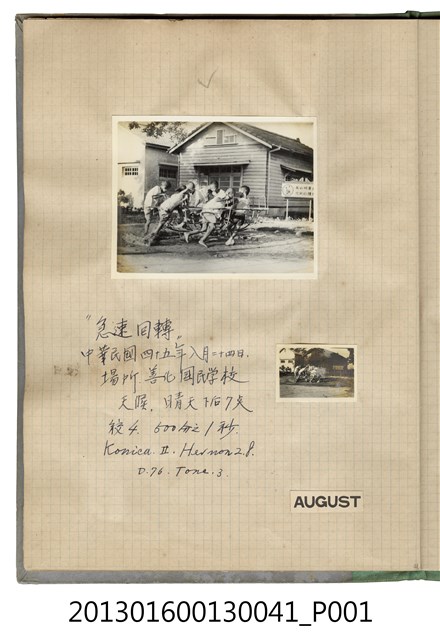 民國45年8月29日陳義鴻與陳新平兄弟於善化國民學校操場合照2張