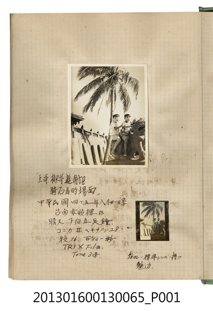 民國45年陳新平於臺南忠烈厝與一男子獨照2張