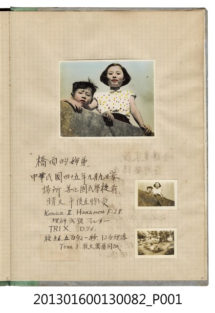 民國45年9月9日陳美惠與陳新平於善化國民學校前合照以及風景照共3張