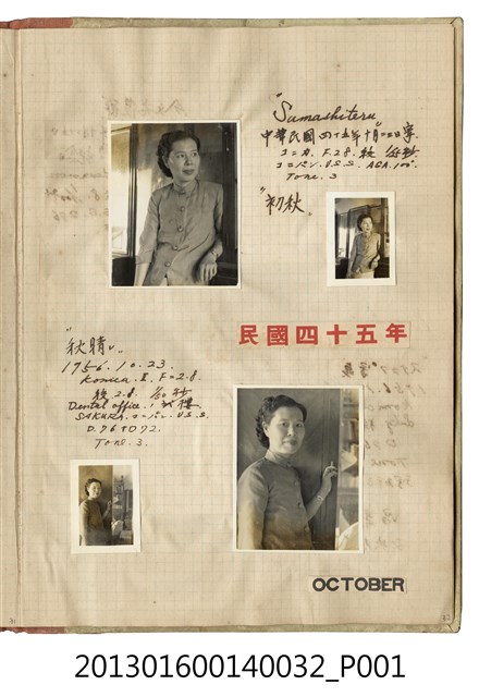 民國45年陳美惠大頭照與陳崧波之妻獨照3張