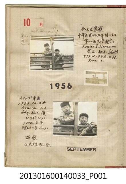 民國45年10月25日陳義鴻陳新平兄弟合照與光復紀念日遊行照5張