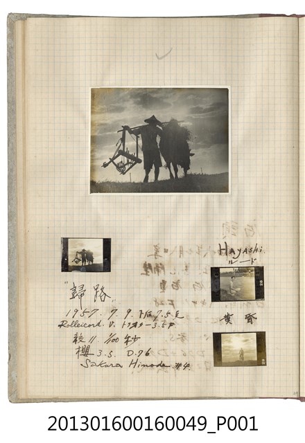 民國46年7月9日鄉間農人與水牛剪影、男子獨照4張
