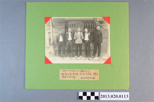 右起劉玉榮、黃文雄、余立海、邱亮森、傅景生。楊梅邱金木宅前。
