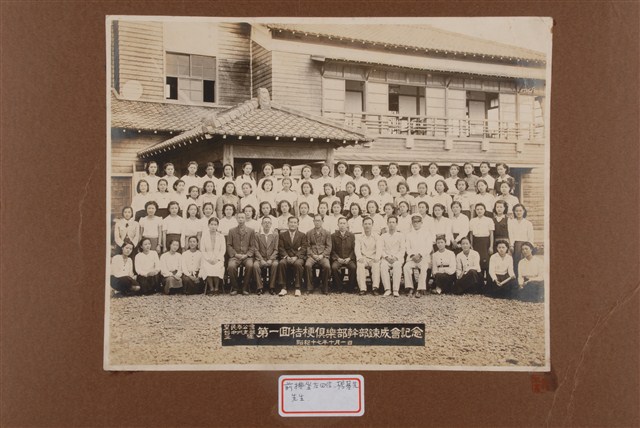 1942年(昭和17年),皇民奉公會臺中州支部主辦第一回桔梗俱樂部幹部鍊成會紀念合照。前排左四楊基先先生。