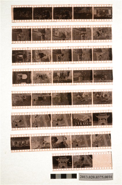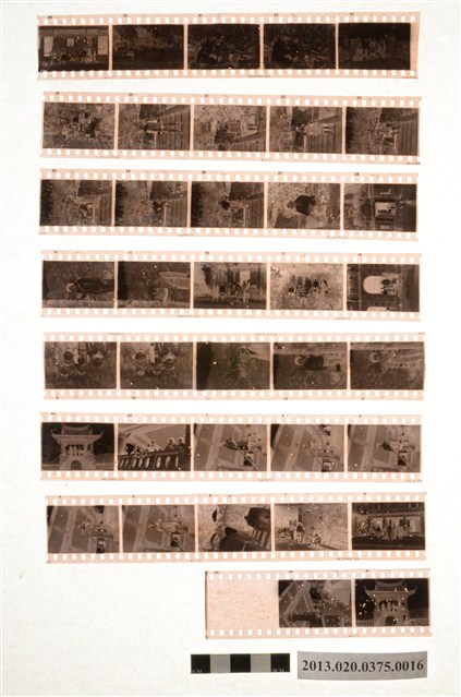 春節黑白底片之二,為阿里山林管局底片60封之16,包含紙封套與底片二部分。紙封套呈扁長方形,帶有些許黃褐色斑點,表面作黑色印刷,封面左側印有「NO.」、「MR.」、「微粒沖片」、「精工放大」、「交件迅速」、「器材買賣」等字,右側印有「通記照相材料行 TONG-KI PHOTO SUPPLIES CO.,」及地址之中英文字樣,並以手寫標註編號「3」,日期「48.2.8」,以及「48年春節照片2」、「獅頭山」等影像內容資訊。封套採四段摺疊方式開闔,內側下半部帶有一層薄膜,用來保護底片,將底片放入後把封套下端上摺以訂書針固定,再向上摺起包覆底片,呈信封狀,最後將開口頂端下摺。底片共有8段,上有白色斑點,每段包含2至5張影像不等,主題為春節期間家族人物及出遊生活照。