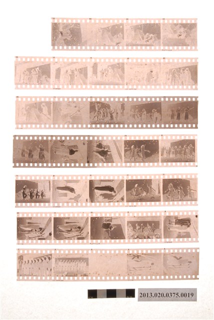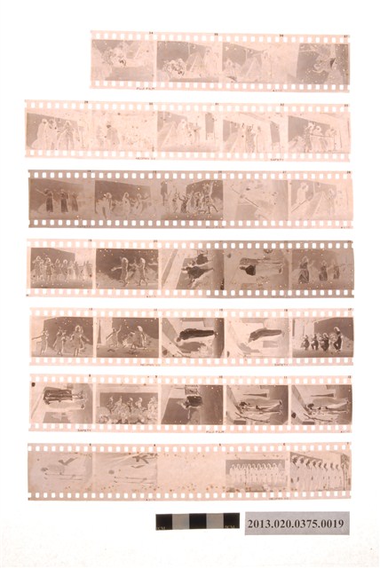 林業文化工作隊晚會黑白底片,為阿里山林管局底片60封之19,包含紙封套與底片二部分。紙封套呈扁長方形,表面作黑色印刷,封面左側印有「NO.」、「MR.」、「微粒沖片」、「精工放大」、「交件迅速」、「器材買賣」等字,右側印有「通記照相材料行 TONG-KI PHOTO SUPPLIES CO.,」及地址之中英文字樣,並以手寫標註編號「6」,日期「48.3.1」,以及「林業文化工作隊晚會」等影像內容資訊。封套採四段摺疊方式開闔,內側下半部帶有一層薄膜,用來保護底片,將底片放入後把封套下端上摺以訂書針固定,再向上摺起包覆底片,呈信封狀,最後將開口頂端下摺。底片共有7段,上有白色斑點,每段包含4至5張影像不等,主題為晚會歌舞表演活動。