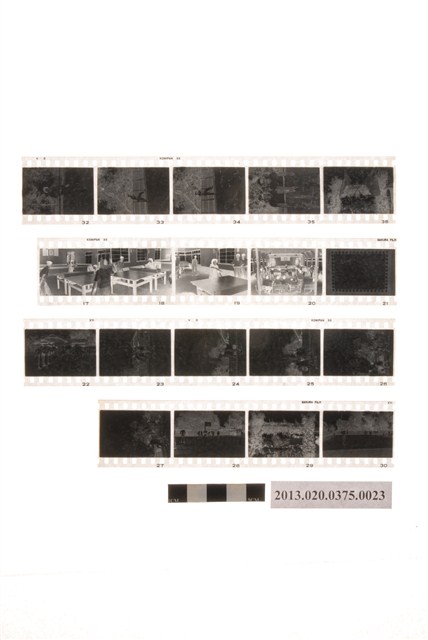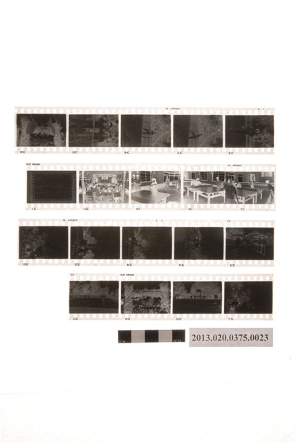 慶祝五一勞動節各項比賽黑白底片之一,為阿里山林管局底片60封之23,包含紙封套與底片二部分。紙封套呈扁長方形,帶有些許黃褐色斑點,表面作黑色印刷,封面左側印有「NO.」、「MR.」、「微粒沖片」、「精工放大」、「交件迅速」、「器材買賣」等字,右側印有「通記照相材料行 TONG-KI PHOTO SUPPLIES CO.,」及地址之中英文字樣,並以手寫標註編號「11」,日期「48.4.30、48.5.1」,以及「慶祝五一勞動節A」等影像內容資訊。封套採四段摺疊方式開闔,內側下半部帶有一層薄膜,用來保護底片,將底片放入後把封套下端上摺以訂書針固定,再向上摺起包覆底片,呈信封狀,最後將開口頂端下摺。底片共有4段,每段包含4至5張影像不等,五一勞動節籃球、網球、桌球等各項比賽活動記錄。