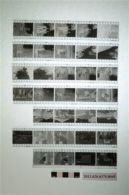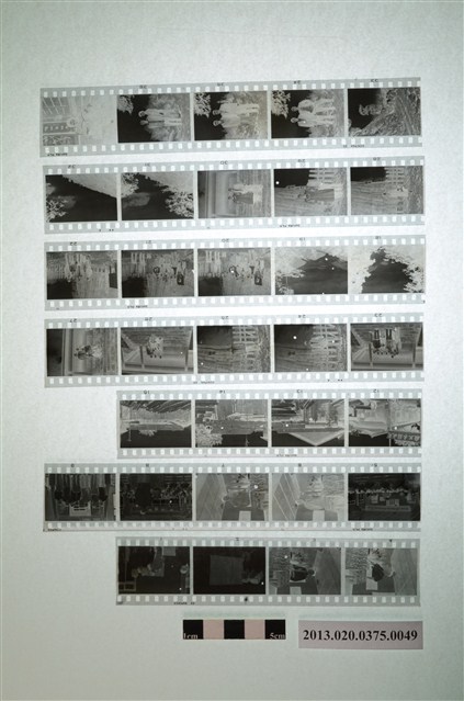 區黨部代表大會與阿里山風景黑白底片,為阿里山林管局底片60封之49,包含紙封套與底片二部分。紙封套呈扁長方形,表面作黑色印刷,封面左側印有「NO.」、「MR.」、「微粒沖片」、「精工放大」、「交件迅速」、「器材買賣」等字,右側印有「通記照相材料行 TONG-KI PHOTO SUPPLIES CO.,」及地址之中英文字樣,並以手寫標註編號「48」,日期「49.5.19.20.21」,以及「區黨部代表大會」、「天成木行處員工宿舍四家」、「最高檢處夏首席惟上檢查官於阿里山」、「阿里山鐵路附近風景片四張」等影像內容資訊。封套採四段摺疊方式開闔,內側下半部帶有一層薄膜,用來保護底片,將底片放入後把封套下端上摺以訂書針固定,再向上摺起包覆底片,呈信封狀,最後將開口頂端下摺。底片共有7段,每段包含4至5張影像不等,影像14至9為區黨部代表大會紀錄,影像12至15為天成鋸木工廠員工宿舍,影像18至37為阿里山風景與人物。